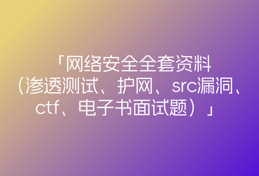 「课程介绍」🚀 网络安全全套资料(渗透测试、护网、src漏洞、ctf、电子书面试题) 「课程目录」🏆 一、网络安全学习路线图 二、kali渗透测试入门教程 三、网络安全工具资源合集 四、网络安全面试题 五、网络安全电子书 六、SRC学习资料包 七、HW学习资料包 八、CTF夺旗赛 种一棵树最好的时间是现在 链接点击下载(提取码: FPS3)复制支付后点击下载按钮即可查看网盘链接,如果链接失效,可联系本站客服